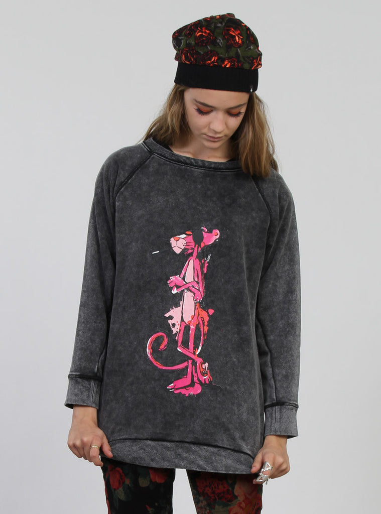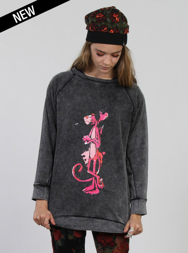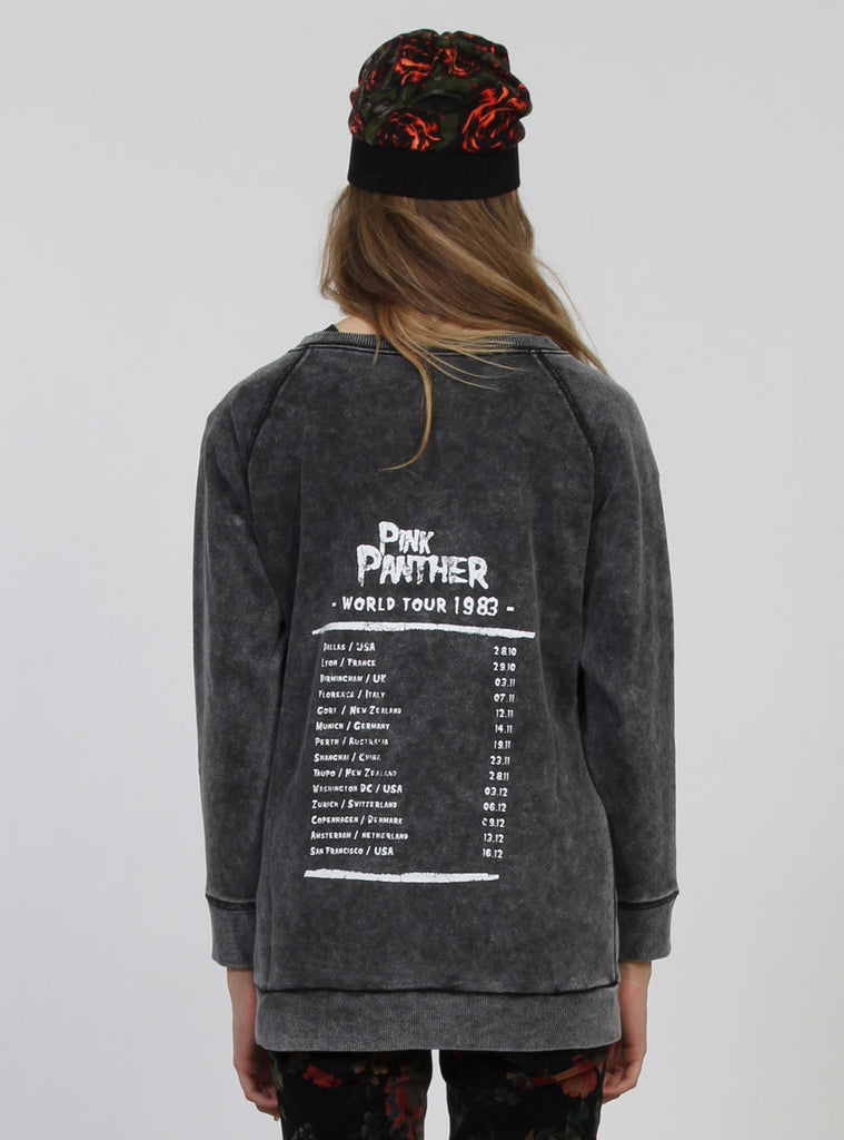 Womens relaxed fit long sleeve crew, rib cuff and neck. Federation custom print on centre front and distressing detailing. +. Pip in left side seam.