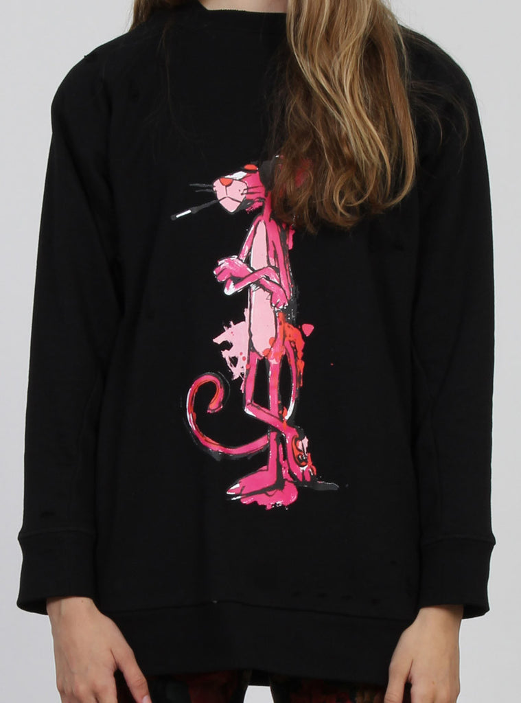 Womens relaxed fit long sleeve crew, rib cuff and neck. Federation custom print on centre front and distressing detailing. +. Pip in left side seam.