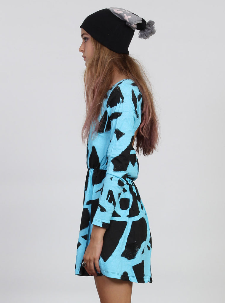 TWISTER DRESS AQ/BLK SPRAY