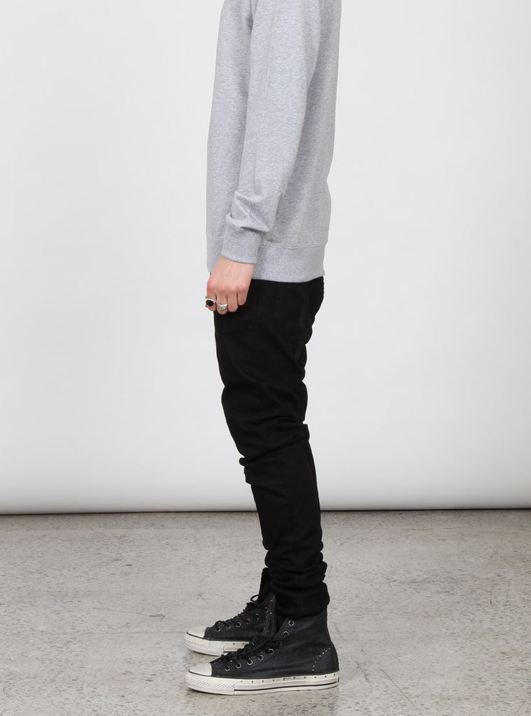 Federation Rocco jeans, long slim leg jeans with zip fly, in stretch denim. Federation branded embroidery on back waistband, +. Tack button and rivets, and +. pip on front fob pocket. Featuring large embroidered plus dos on back pockets.