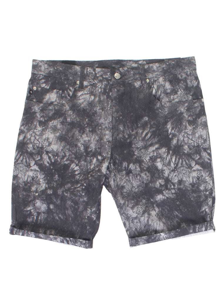 Federation men's perfect shorts, slim leg with turned up cuff and zipper fly front, in stretch denim. Federation branded embroidery on back waistband, +. Tack button and rivets, and +. Pip on front fob pocket with custom printed federation pocket bags.