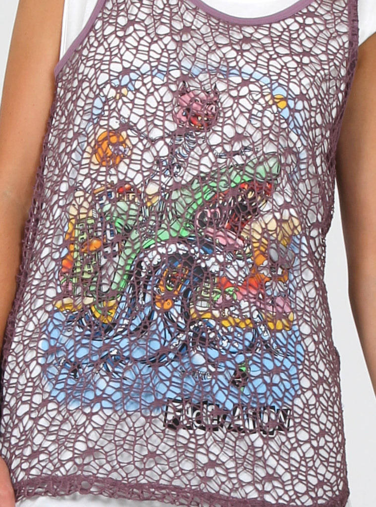 relaxed fit, long length, scoop neck singlet. bound neckline and arhole, +. pip in left side seam