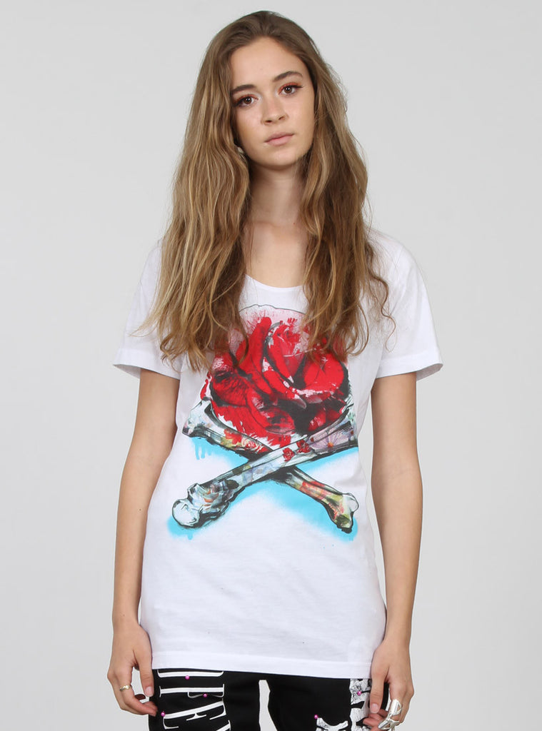 SCOOP TEE - ROSE & CROSS BONES WHITE