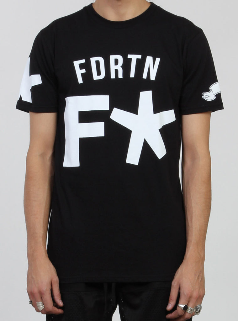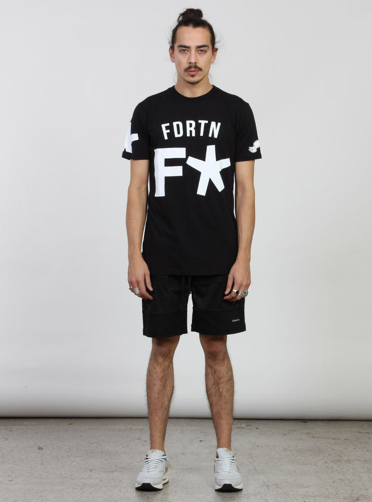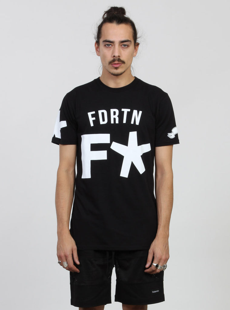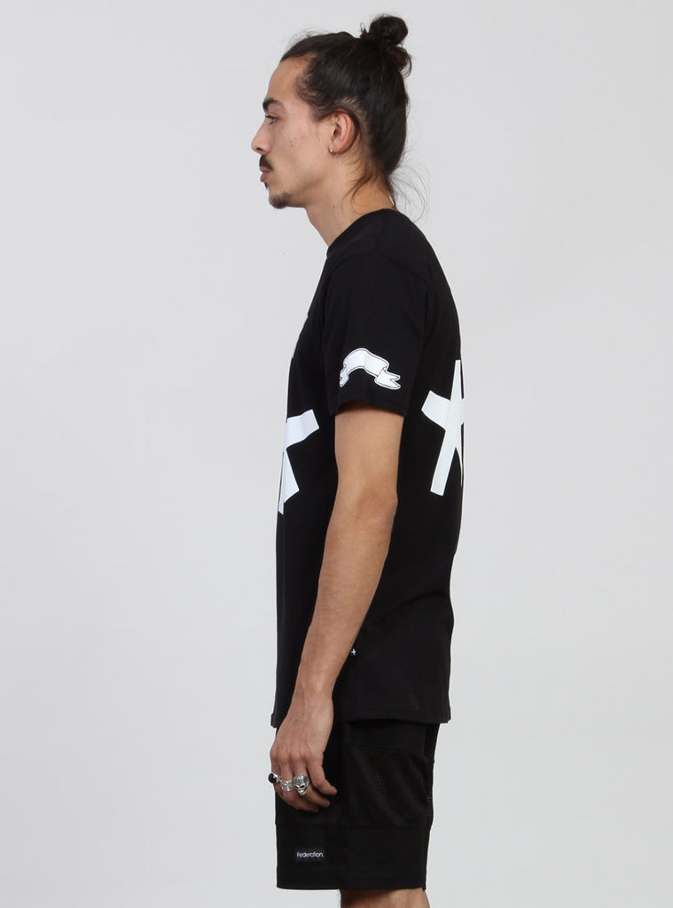 Relaxed fit s/s tee with round rib neck. featuring federation custom print on centre front and +. pip in left side seam.