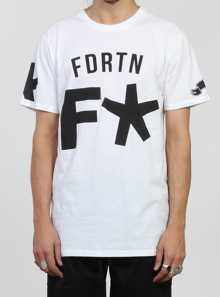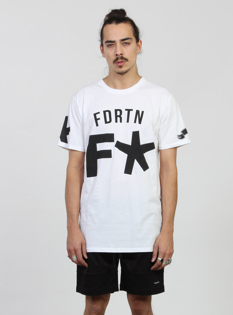 Relaxed fit s/s tee with round rib neck. featuring federation custom print on centre front and +. pip in left side seam.