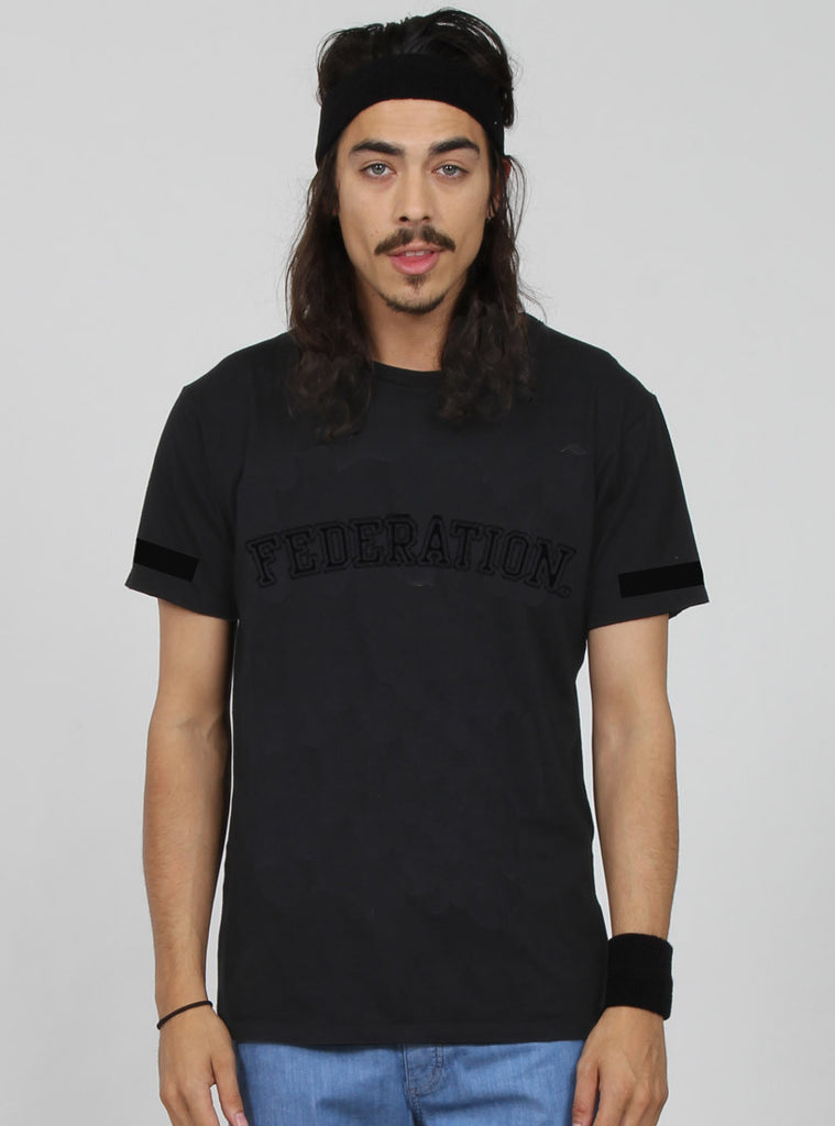 Relaxed fit s/s tee with round rib neck. featuring federation custom print on centre front and +. pip in left side seam