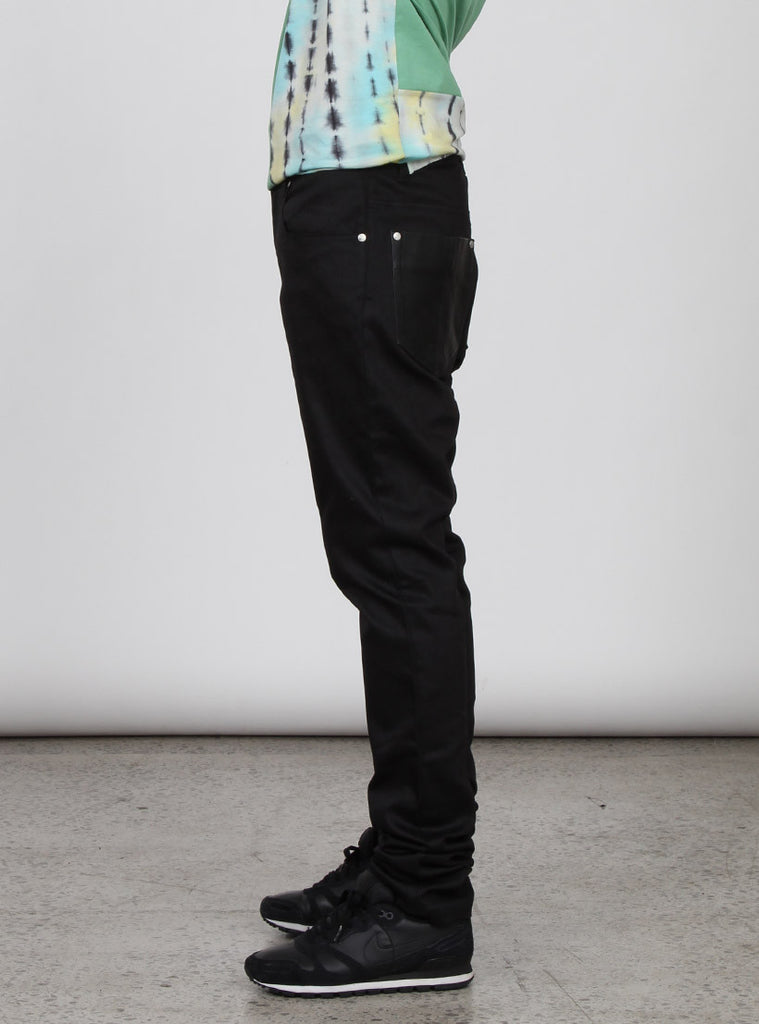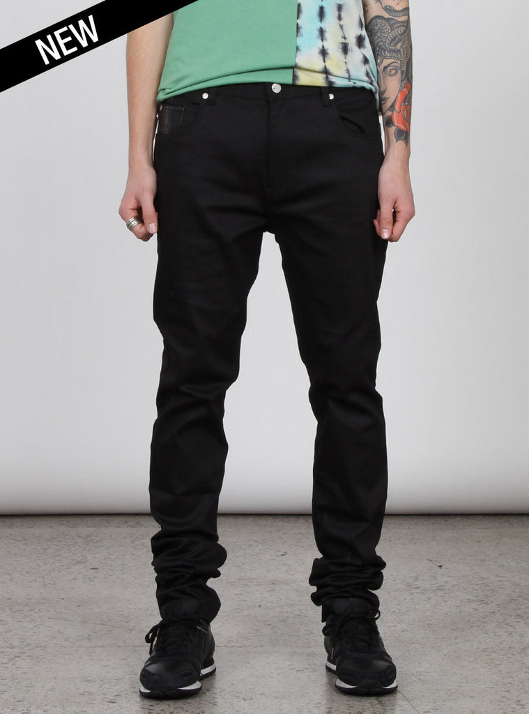 Federation Rocco jeans, long slim leg jeans with zip fly, in stretch denim. Federation branded embroidery on back waistband, +. Tack button and rivets. +. Pip on front fob pocket.