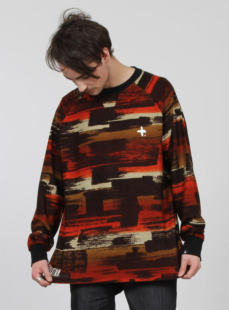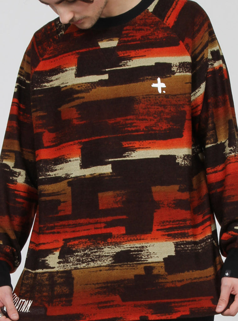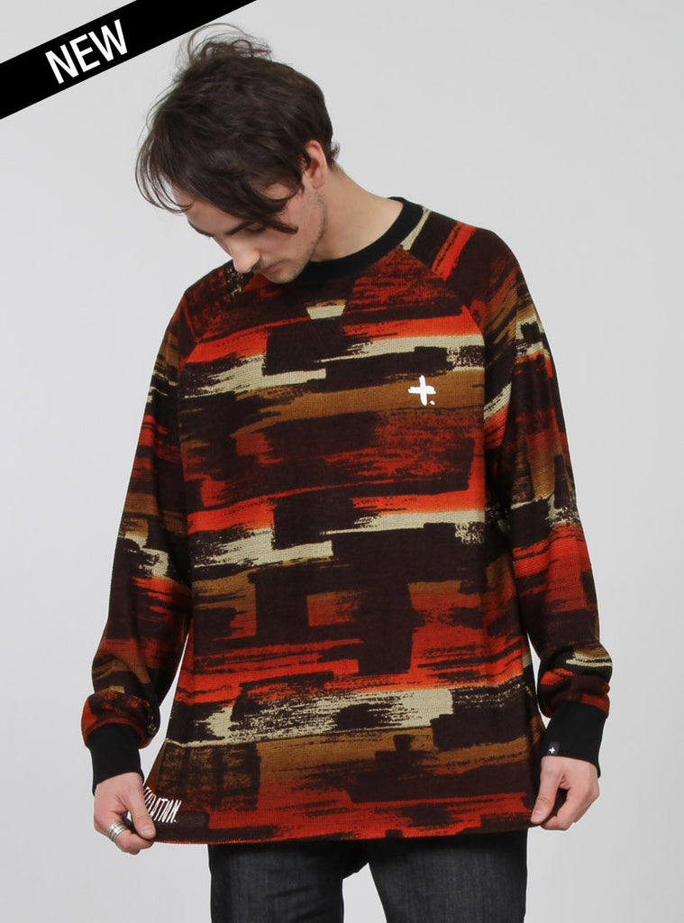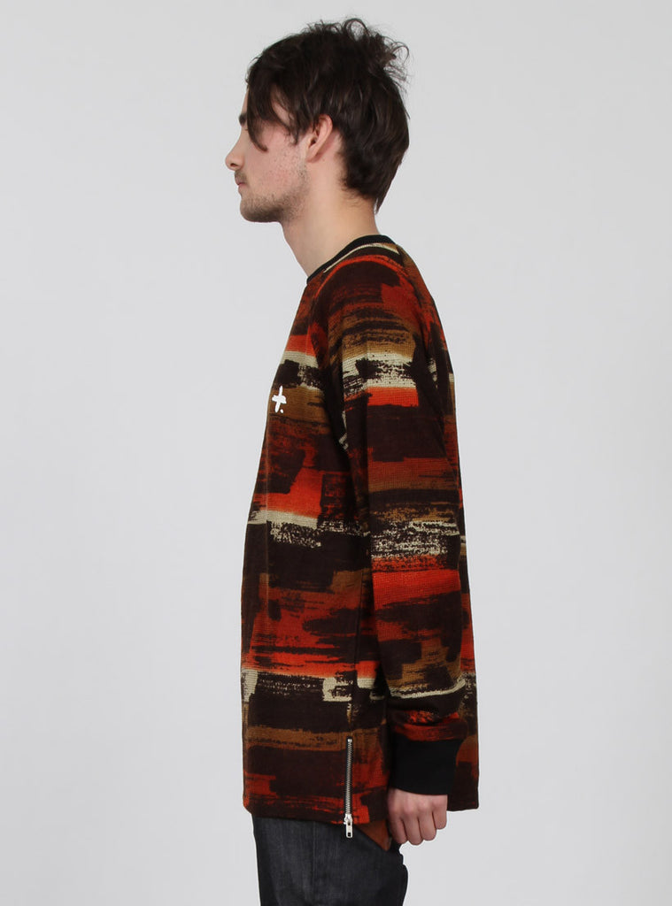 Relaxed fit men’s crew, contrasting sleeves and rib. Two inserted side seam pocket, +. Print on left chest and +. Pip in left side seam .