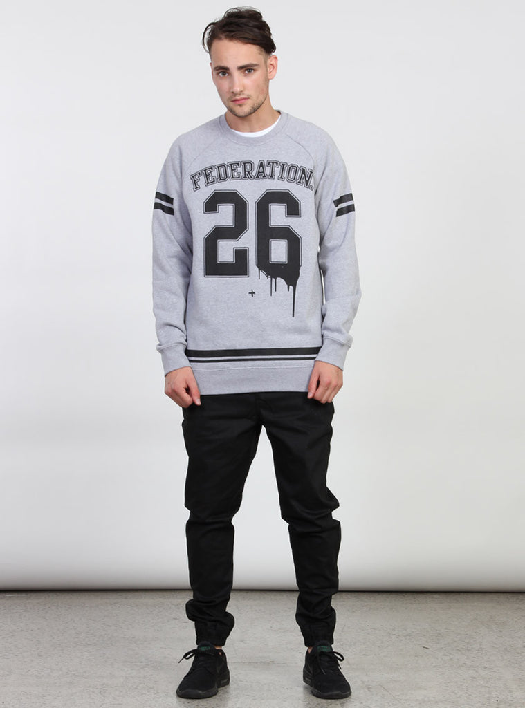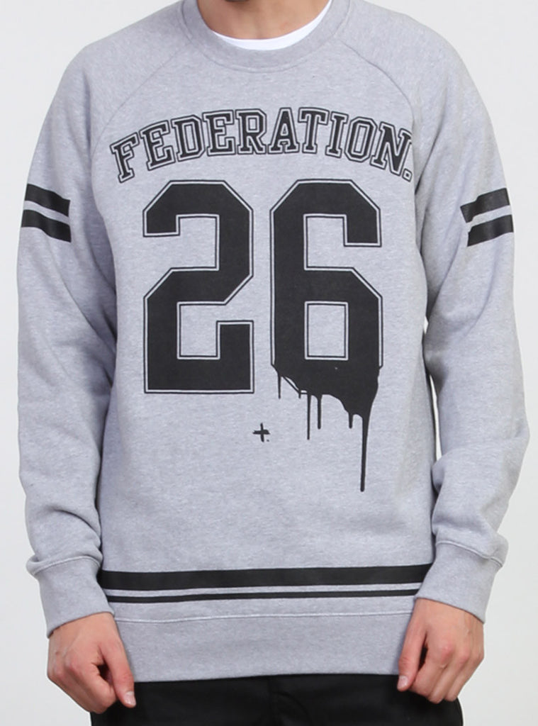 Men’s relaxed fit crew, rib hem cuff and neck. featuring custom federation print on front.