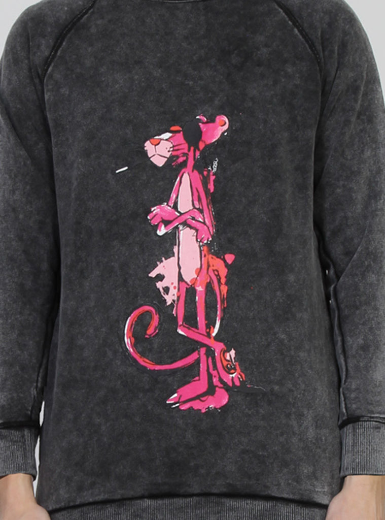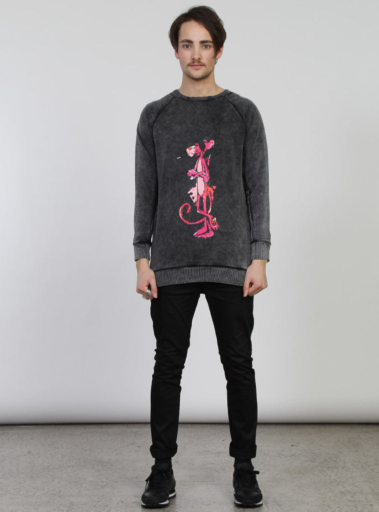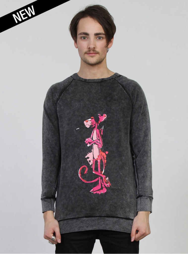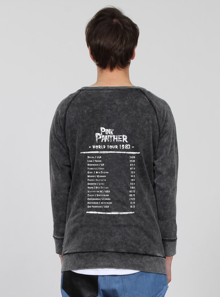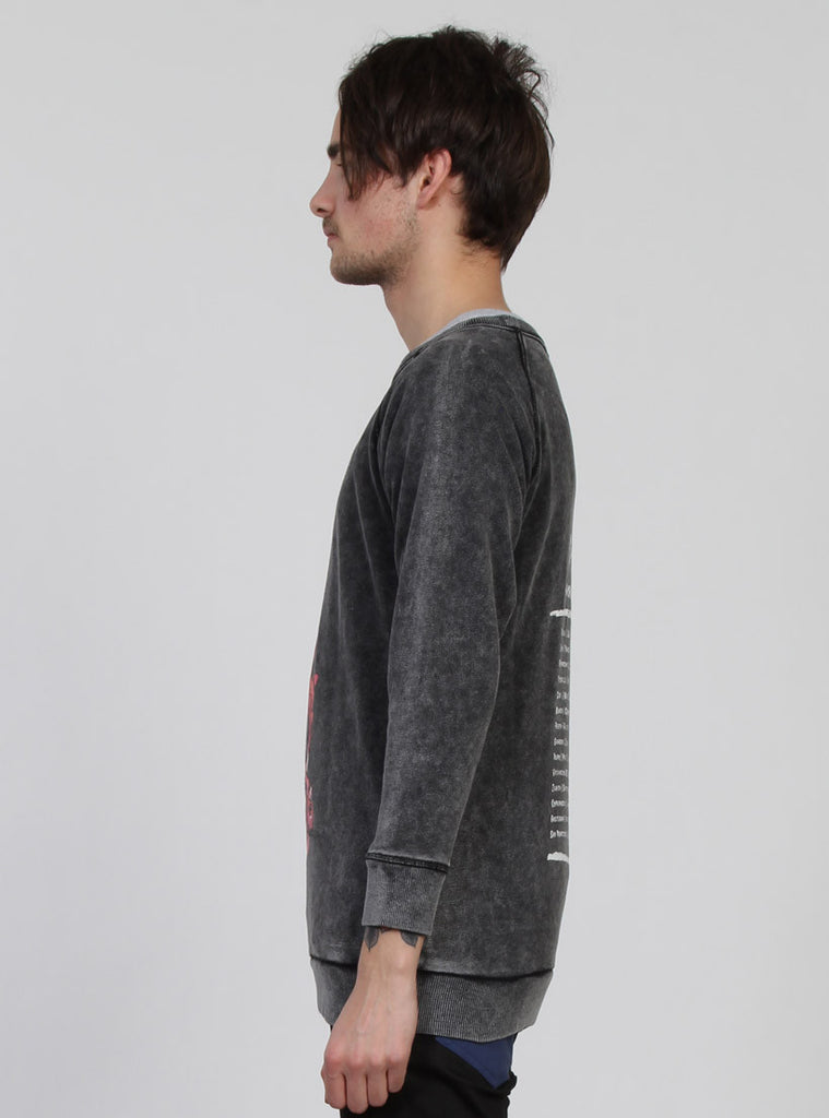 Men’s relaxed fit crew, rib hem cuff and neck. Featuring custom federation print on front and back and distressing detailing. +. Pip in left side seam.