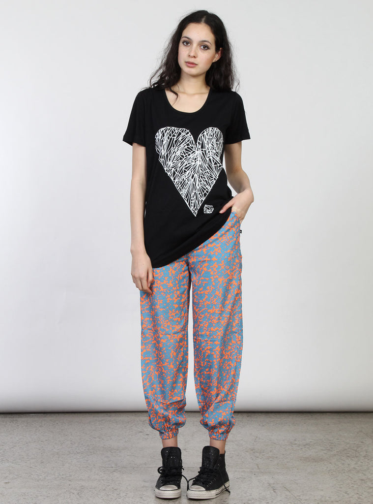 Relaxed fit scoop women's tee, featuring custom federation print on centre front and +. Pip in left side seam.