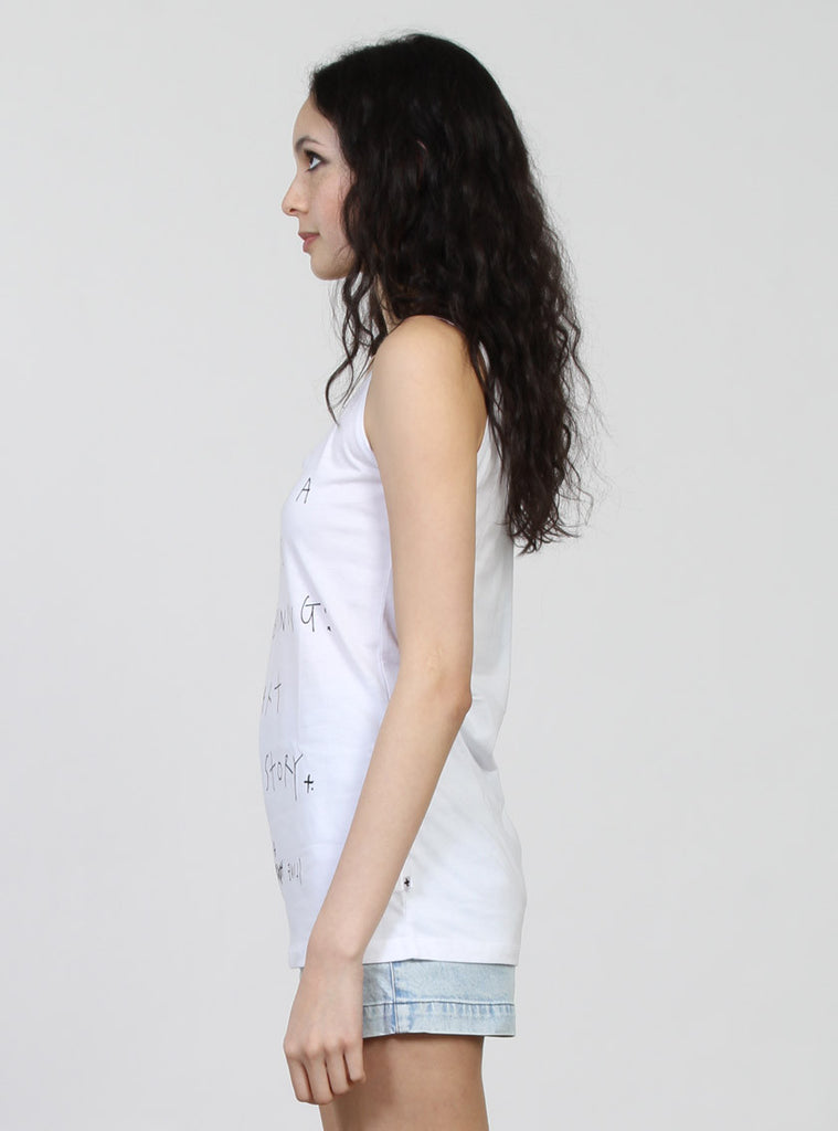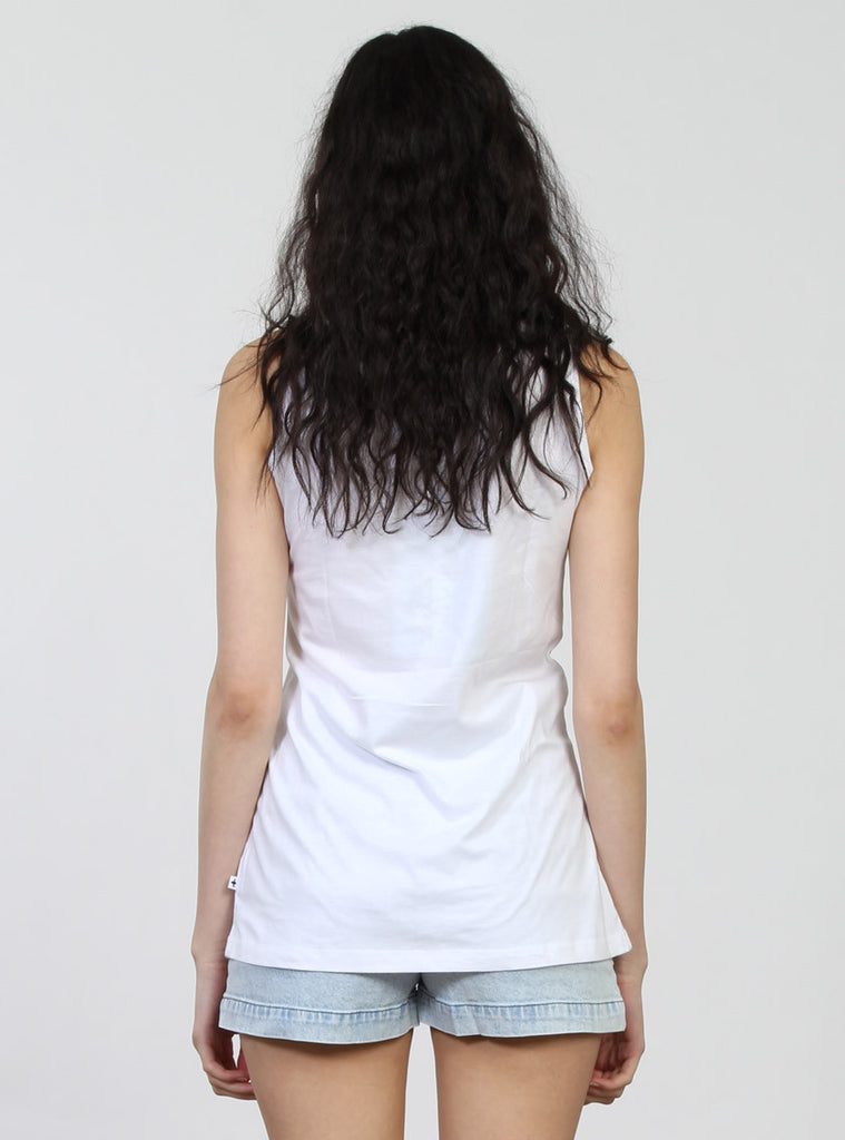 Relaxed fit women's cotton singlet featuring Federation custom print on centre front and +. Pip in left side seam.